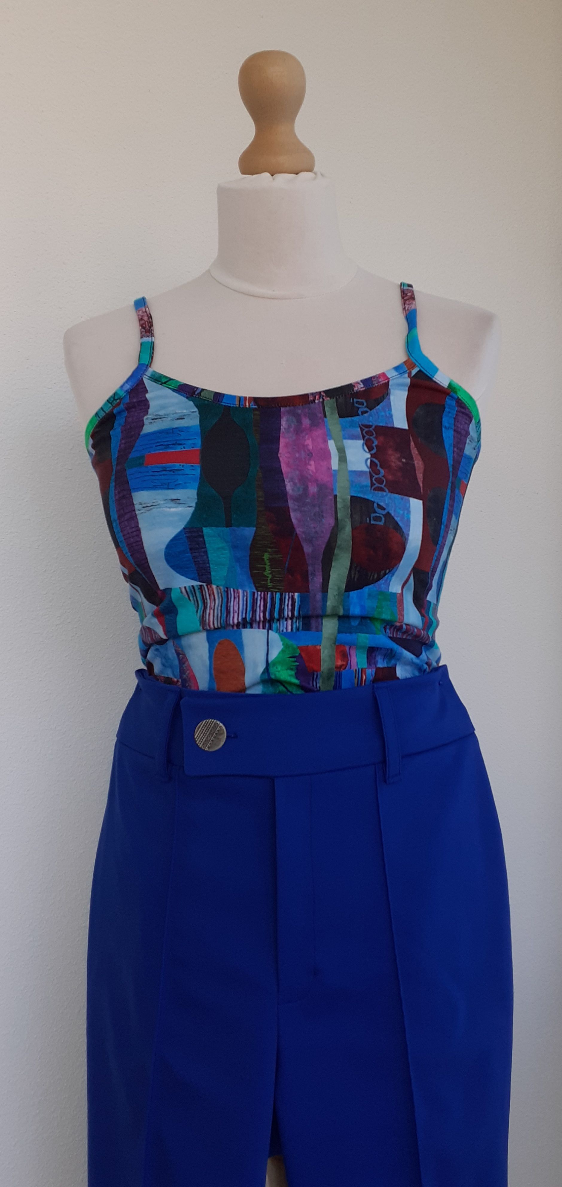 De broek is alleen ook goed te dragen met een strak aangesloten top. (zoals die van de grafische prints) Hij krijgt dan een wat nonchalantere uitstraling.